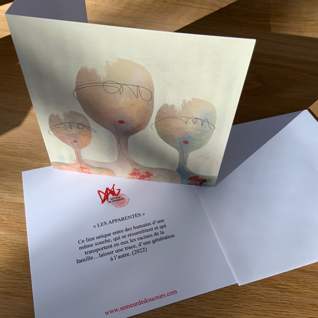 Ce projet est dans notre tête et dans notre coeur depuis longtemps…rendre accessible mes images, en format carte de souhait « sans texte », et les faire voyager avec vos mots. Prendre le temps d’écrire à la main, ce que nos êtres chers nous apportent dans nos vies. Les thèmes des cartes sont là pour vous inspirer…