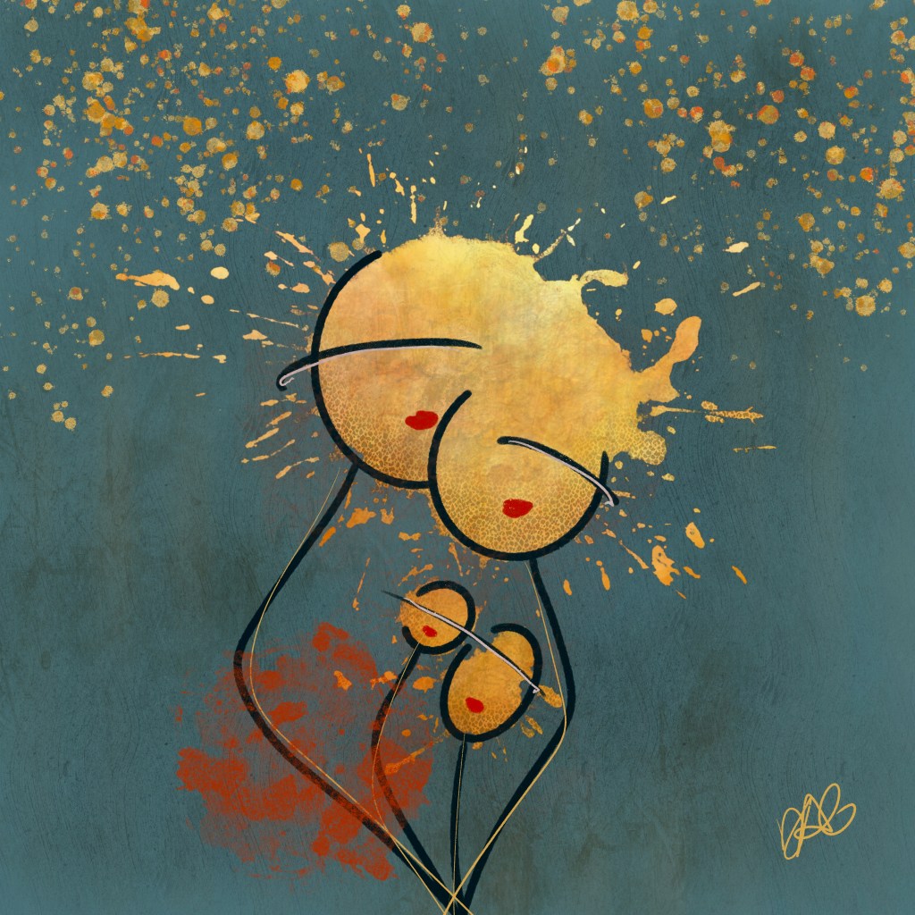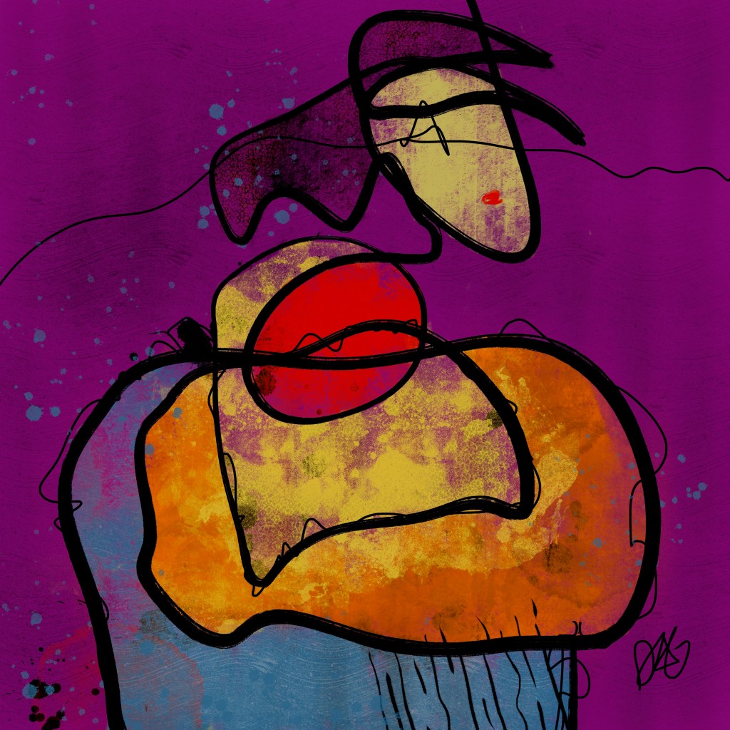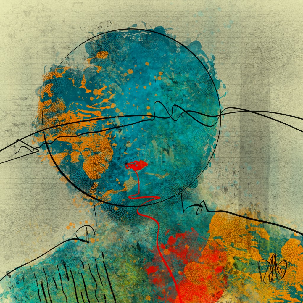 « Éclatement »…Seul, nous sommes si fragiles et vulnérables…unissons-nous et renversons, ensemble, ce grand risque d’éclatement. Créons, dès maintenant, ce point de bascule…dans la douceur, l’amour et l’harmonie. Et si c’était ça…« rêver en couleurs » et sans douleur…« Contentement »…Quand il n’y a plus rien à ajouter dans notre vie…quand ce qui est là, en nous et tout autour, nous comble…on goûte à cette béatitude et on se contente de cet espace de bonheur et de joie qui est si accessible…« L’Audace » …Quand on s’affranchi du regard des autres et que l’on touche à la liberté d’être soi…quand le courage prend les devants…on goûte profondément à cette audace, qui dort trop souvent en nous…« L’Humaniste » J’ose croire que l’humain peut arriver à changer le monde qui l’entoure, par sa sagesse et son intelligence, en se connectant à son humanité et celle de l’autre…